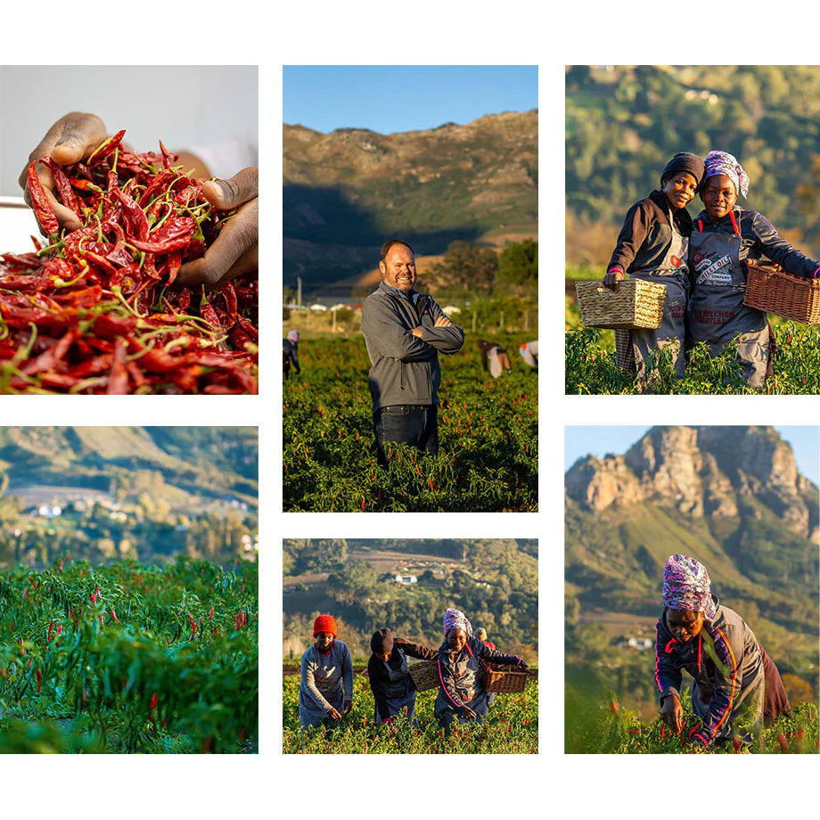 We really care as much about our local community as we do about our chillies. South Africa has many social challenges, especially unemployment, and we work hard to uplift our valley by hiring locally. All we need is a positive attitude - we will teach the skills needed. Today almost all our staff can walk to work, a massive plus where reliable and affordable transport is scarce.