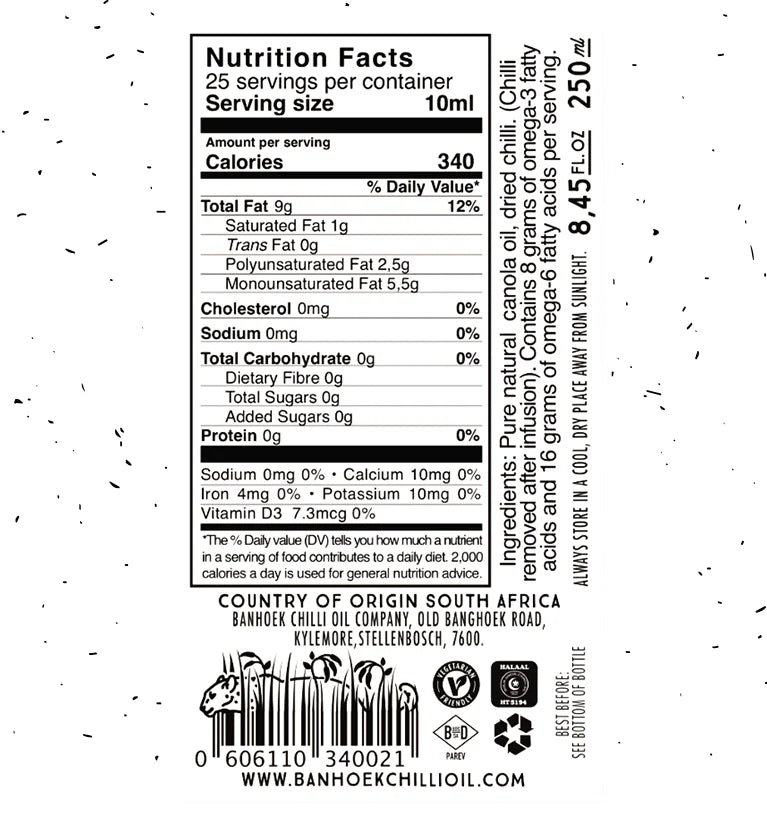 Banhoek Chilli Oil is a 100% natural, premium-quality chilli-infused canola oil.